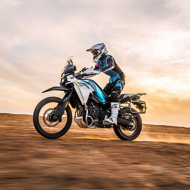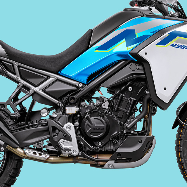 The 450MT's off-road spirit is embodied in its technical prowess, striking bodywork, and distinctive styling. With 90/90-21 front and 140/70-18 rear wheels, a generous 220mm of ground clearance, and a comfortable 820mm seat height (adjustable to 800mm with an optional low seat), the 450MT is poised to conquer challenging routes.