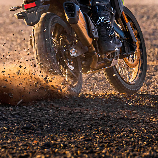 Thoughtfully fine-tuned ergonomics make long journeys a breeze on winding roads while maintaining complete control on rough tracks. The high-bend handlebar and dedicated foot pegs contribute to a comfortable and confident riding experience, ensuring you're always in command of your journey.
